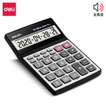 得力1526ES 水晶按键12位语音计算器 亚克力面板语音计算机 银色