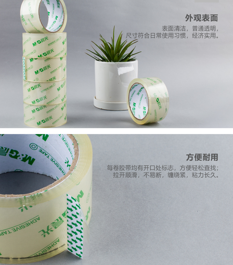 当前位置:首页 > 办公及体育用品-胶带 > 晨光(M&G) AJD95795 普惠型高透封箱胶带 48mm*50y 6卷/筒