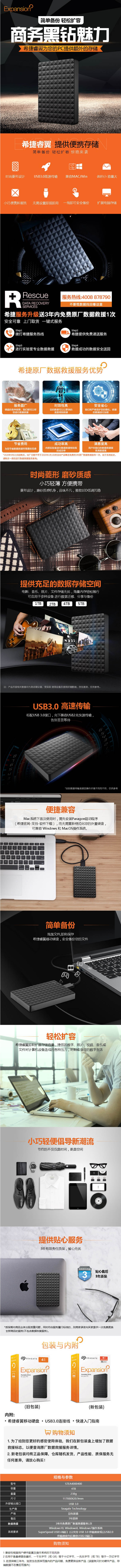 希捷STEA4000400 移动硬盘 4TB USB3.0 睿翼 2.5英寸商务黑钻 兼容Mac