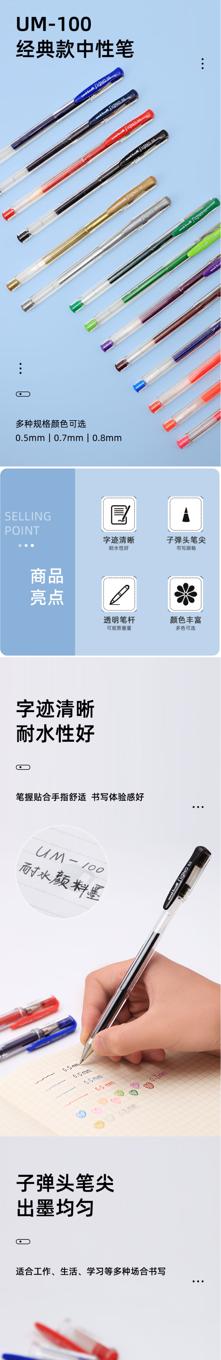 当前位置:首页 > 办公及体育用品-笔类 > 三菱UM-100黑色中性笔0.5mm黑笔签字笔商务学生考试专用水性笔套装 5支